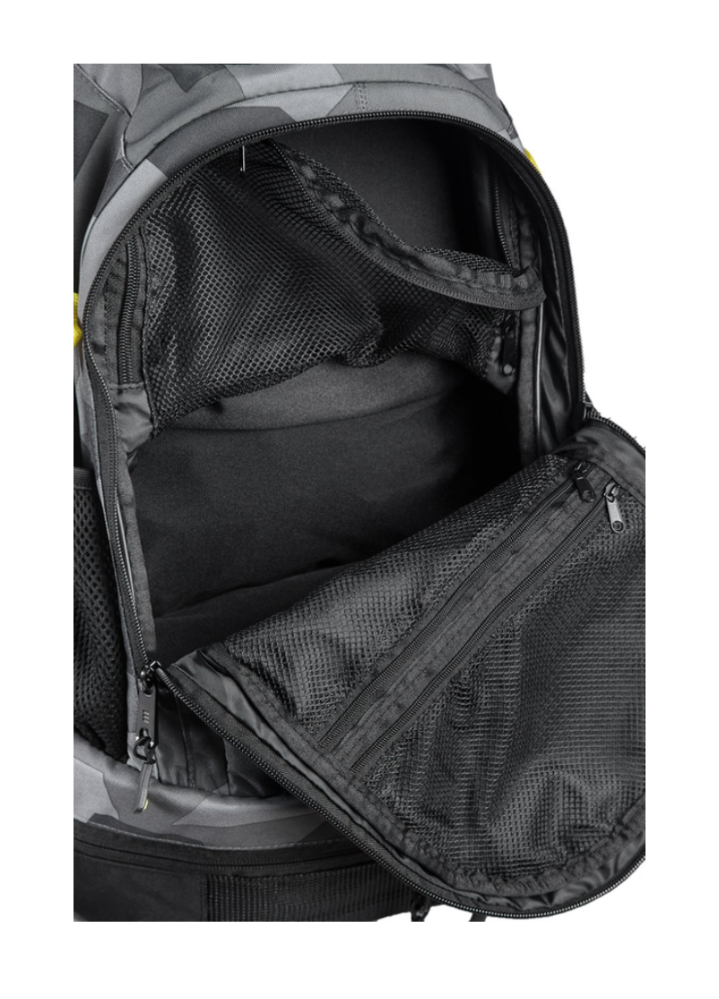 - Et stort multifunktionelt front rum med flere små lommer og rum i. Du kan nemt i dette rum opdele dit udstyr, så du nemt og hurtigt kan finde dine ting frem og ikke mister overblikket. I denne lomme kan blandt andet fremhæves specialrummet i meshnylon, som nemt kan opbevare notesbøger.