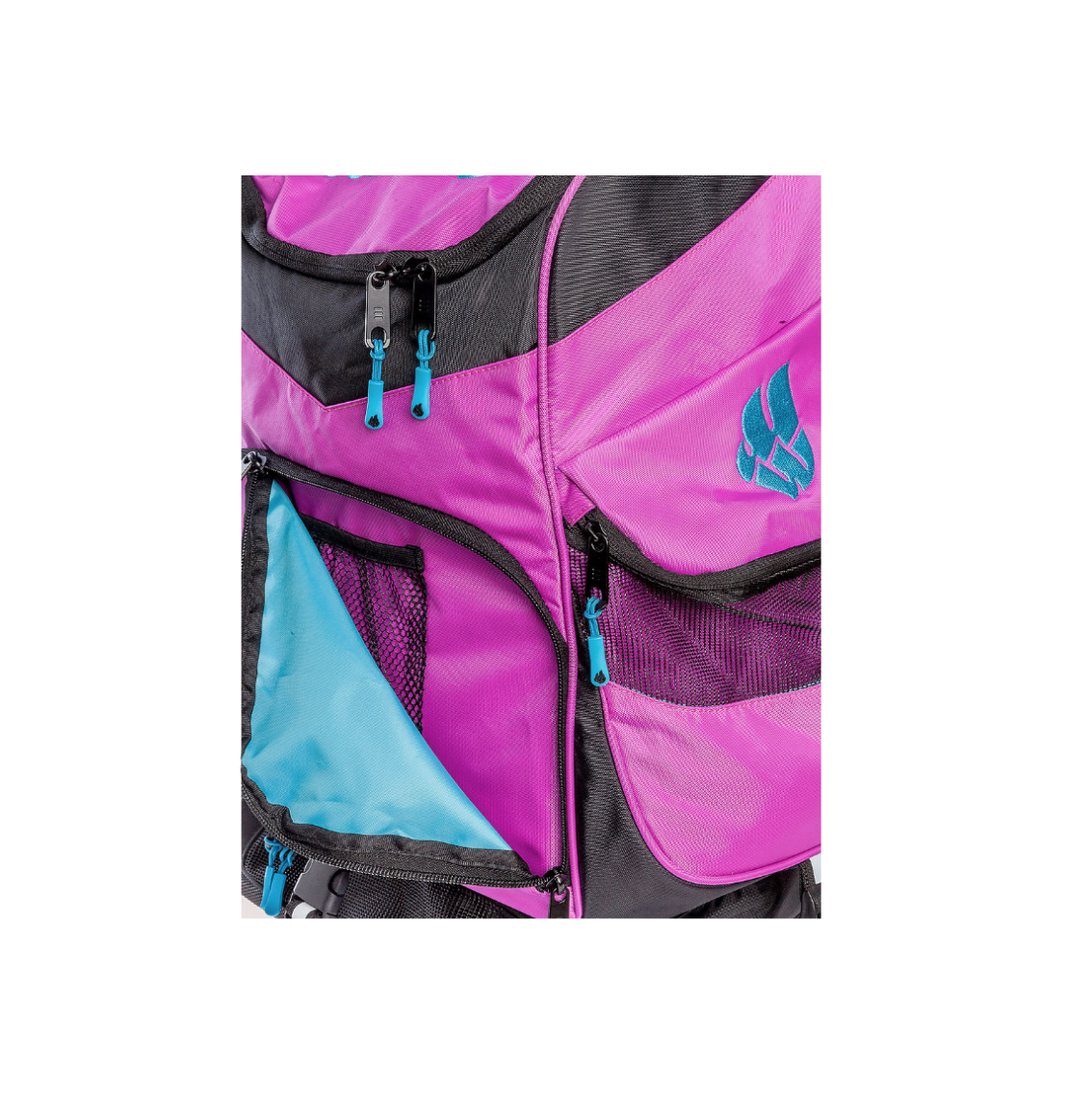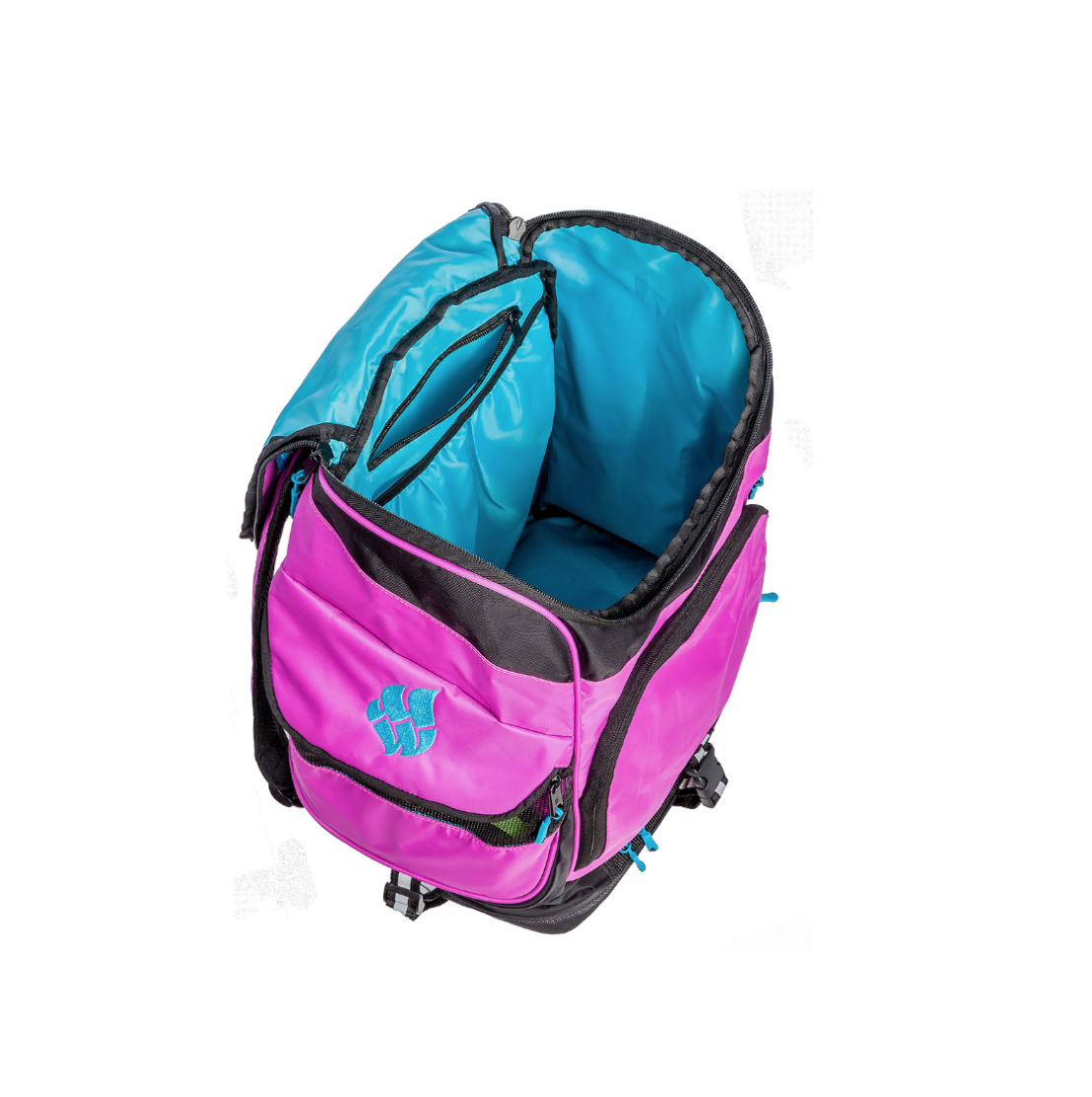 - Det store centrale rum er praktisk til alle dine større svømmeremedier du skal have med, håndklæde, svømmefødder, fingerplader med mere. I det store rum finder du også et adskilt rum med lynlås, som kan holde dit elektronik, pung, nøgler med mere tørt og sikkert. Op mod ryggen i det store rum finder du også et rum med mesh opdeling. Dette rum er praktisk til opbevaring af papir, tynde mapper eller ligende.