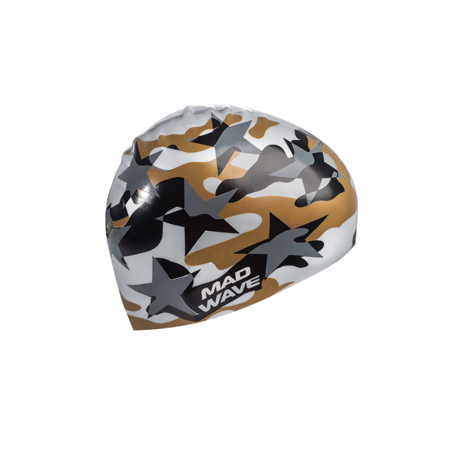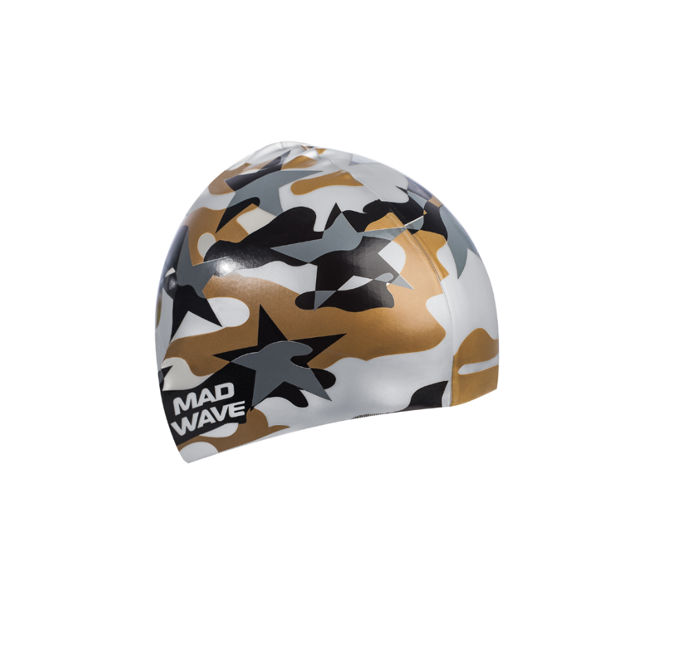 Badehætten Military Star er en super flot hætte. Med aftegninger af camouflage i farverne kobber, grå, sølv og sort og med store stjerne hen over, bliver du helt sikkert en stjerne til næste svømmetræning.