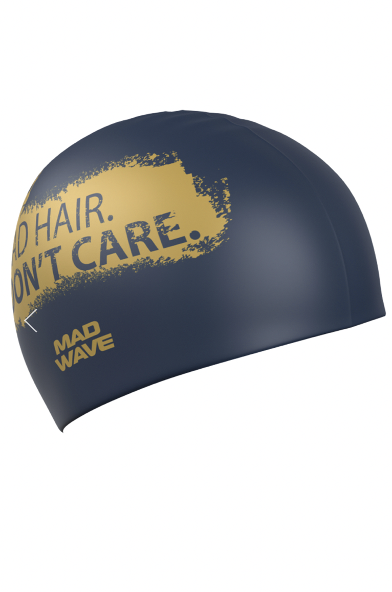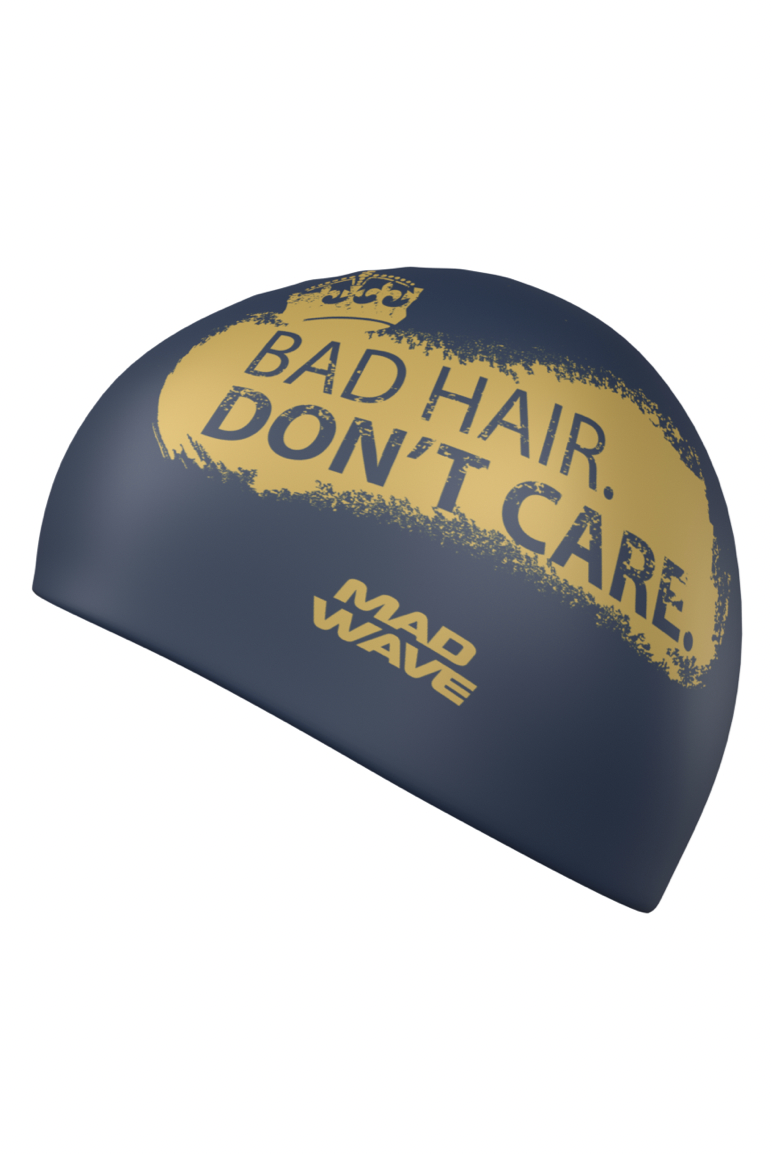Bad Hair – Don’t Care er en svømmehætte med et fedt slogan og design. Sort baggrund med guld skrift…..Det kan ikke gå galt, denne svømmehætte er fuld af selvtillid.