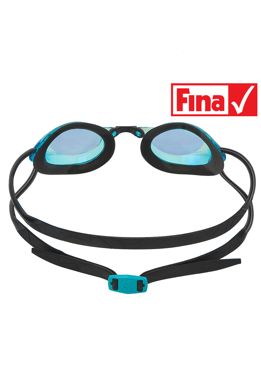 - Svømmebrillen er monteret med en dobbelt rem, som giver et godt og jævnt træk omkring hovedet.