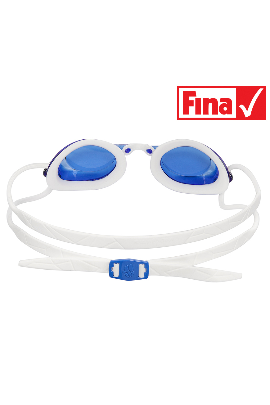 - Svømmebrillen er monteret med en dobbelt rem, som giver et godt og jævnt træk omkring hovedet.